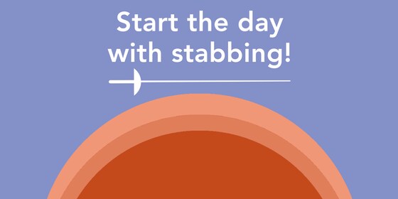 Welcome to Start the Day with Stabbing! Tickets are free but important as numbers as limited. The session runs from 10:30 to 12:00. All adults are welcome, no prior fencing experience necessary! All fencing equipment will be provided and activities will be tailored to the participants. Bring a water bottle, sports shoes and wear clothes you're comfortable to move in.